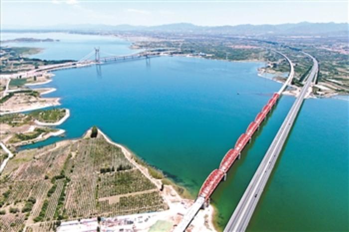 6月12日,京张高铁全线铺轨完成,图为5月29日,铺轨完成后的官厅水库特大桥。