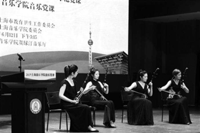6月12日,在音乐党课上,上海音乐学院师生进行乐器演奏。