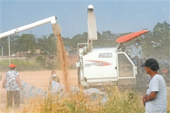6月3日下午,收割队在豫西平原上加紧作业。南边传来阵阵雷声,大家都加快了速度。