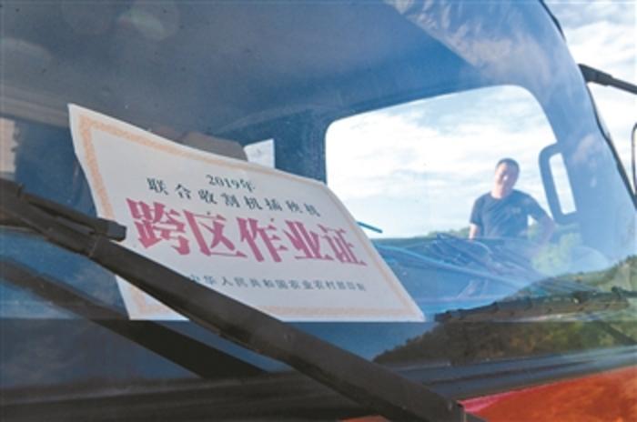 收割队的每一辆车上都有一张“跨区作业证”,凭它上高速可以走绿色通道,无需缴费。