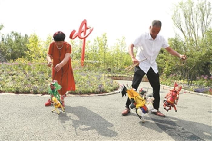 6月23日,一对夫妻正在北京世园会河南园展示传统非遗项目——提线木偶。当日,2019年中国北京世界园艺博览会“河南日”活动举行。本报记者 王伟伟 摄