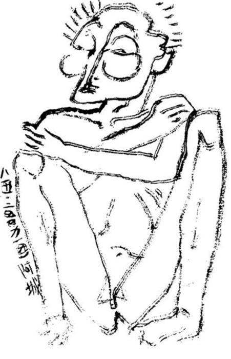 《棋王》初版作者漫画像 曹力 绘