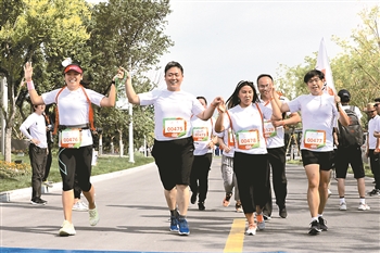 6月23日,由北京冬奥组委举办的2019国际奥林匹克日冬奥主题活动暨阿里巴巴北京世园会公益跑活动在京举行。北京冬奥组委正式发布《北京2022年冬奥会和冬残奥会低碳管理工作方案》。图为一对盲人夫妻完成了3公里公益跑。本报记者 王伟伟 摄