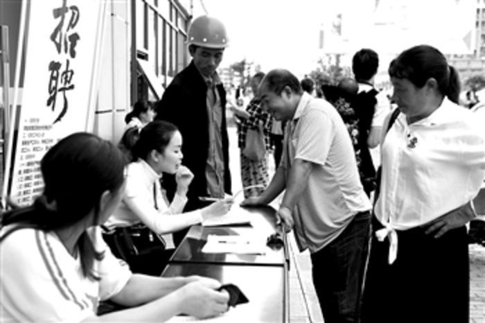 6月24日,易地扶贫搬迁群众在招聘点询问招聘信息。