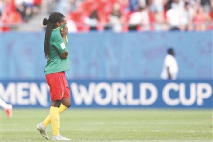 英格兰队在16强赛以3比0战胜喀麦隆队,喀麦隆队球员阿沃娜难掩失落。 新华社记者 郑焕松 摄