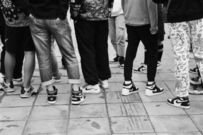 限量版球鞋发售,年轻球鞋迷穿着指定款式的球鞋排长队等候抽签买鞋。魏永贤 摄/视觉中国