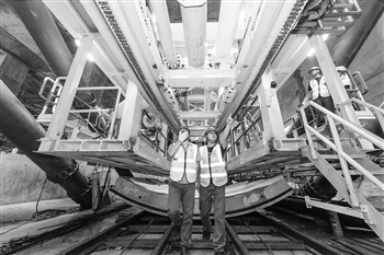 广东省重点工程——广州市轨道交通18和22号线盾构工程师检查始发前各项参数。王小杰 摄