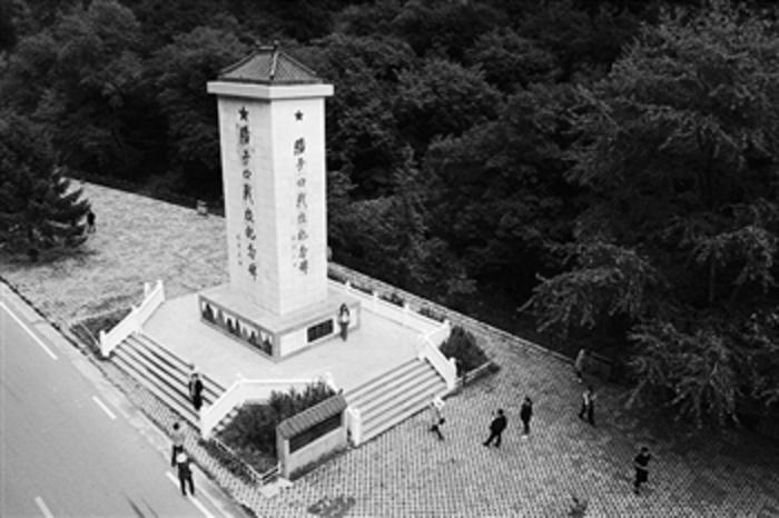 图为游客在腊子口战役纪念碑前参观(无人机拍摄)。“七一”前夕,甘肃省甘南藏族自治州迭部县迎来红色旅游热。新华社记者 马宁 摄