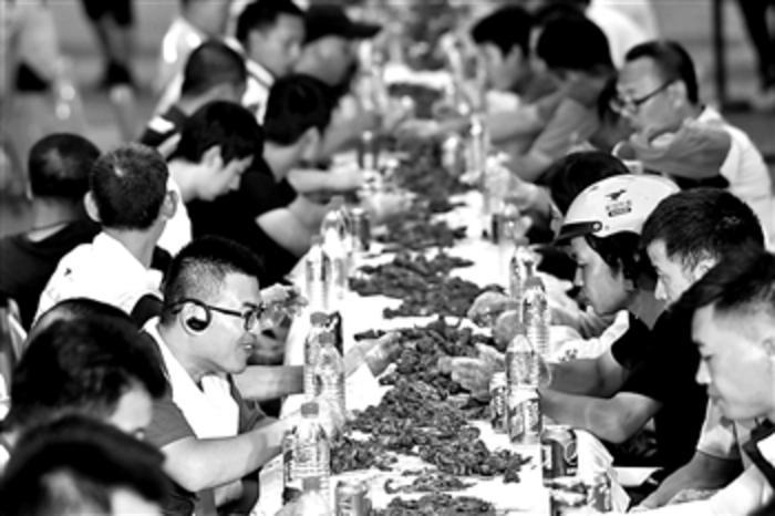 6月30日晚,在成都市高新区交子大道附近,400多名来自不同平台的外卖小哥聚集在一起,一边吃小龙虾一边交流。当天,成都一饭店举行“630背影骑手节”,为400多名外卖小哥准备了500多千克小龙虾以及各种饮料。此次公益活动是该饭店专门为送餐骑手打造的一次专属的节日,每年的6月30日举行,今年是第二届。东方IC 供图