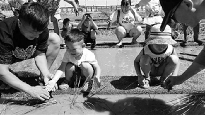 “南苑稻米香,炊味人知晌”第一届插秧文化节日前在北京红星集体农庄开幕。作为北京市科普教育基地,该农庄以自产南苑稻为媒介,向中小学生、北京市民普及水稻种植的历史和种植知识。这一文化节将持续到8月15日。