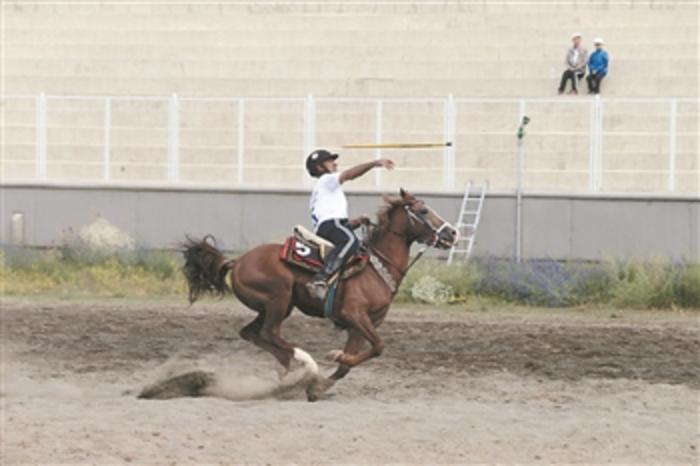 6月30日,在土耳其埃尔祖鲁姆,一名选手参加骑马掷标枪比赛。