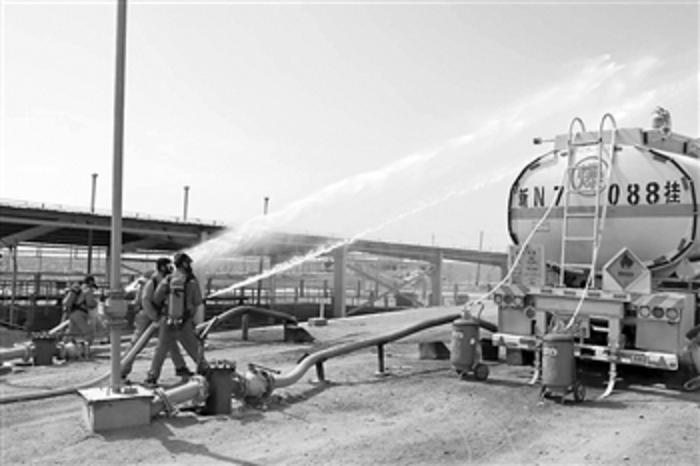 6月28日,中国石化西北油田在雅克拉末站卸油台开展“防风险、除隐患、遏事故”应急消防演练,提升站库处置紧急情况能力。