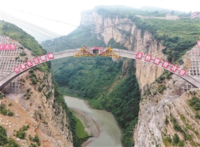 当日,位于川滇黔三省交界处的鸡鸣三省大桥主拱圈顺利合龙,标志大桥建设取得重大阶段性进展,为2019年底建成通车奠定了坚实基础。