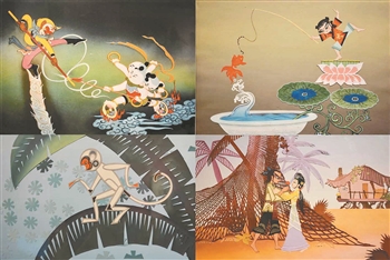 漫画作品《大闹天宫》(左上)、《渔童》(右上)、《等明天》(左下)、《金色的海螺》(右下)东方IC 供图