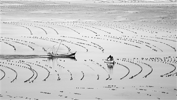 渔民在海洋牧场上工作(7月8日摄)。目前正是辽宁省大连市长海县扇贝和鱼类收获的季节,长海县小长山岛海域经典国家级海洋牧场呈现出一片繁忙的丰收景象。