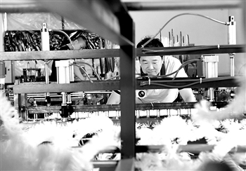 7月10日,在天津市武清区曹子里镇德怡科技股份公司,工人利用自制设备生产绢花辅材。武清区曹子里镇素有“绢花之乡”的美称。近年来,该镇的绢花生产突破手工作坊模式,与规模企业对接,走规模化、集群化发展之路。如今,全镇绢花生产覆盖6个专业村,500个专业户,开发出100多个系列、1000多个品种的产品,行销国内外。新华社记者 马平 摄