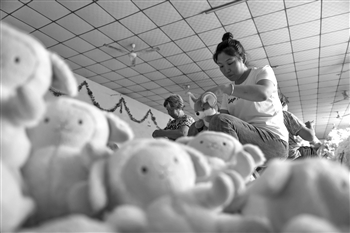 7月9日,村民在“扶贫车间”内加工毛绒玩具。
