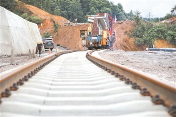 7月13日,中铁二十局的建设者们在进行最后阶段的铁轨铺设。