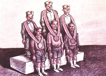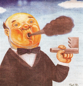 画家将污染环境的企业主比喻为“瘾君子”,他不仅仅祸害自身,更让“二手烟”荼毒邻居,对于此君规劝实难收效,非“严办”不可。【保加利亚】波波夫