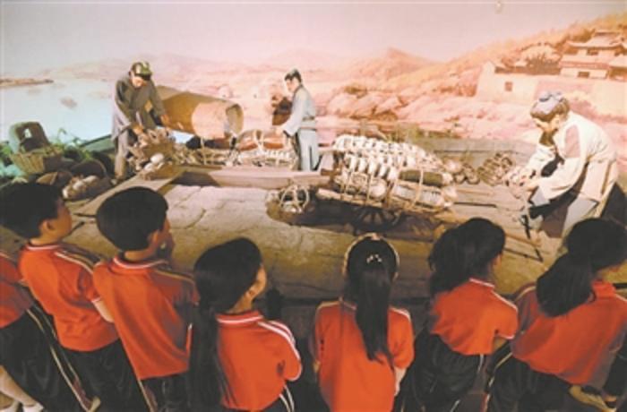河北省邯郸市峰峰矿区彭城小学的学生在中国磁州窑历史博物馆内参观。东方IC 供图