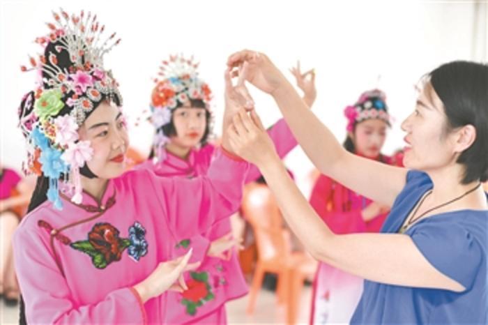 图为7月16日,小朋友们在滦州市自强里社区活动室学习评剧。