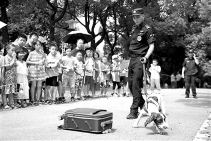 7月18日,湖南省公安厅在警犬基地举行“警营开放日”活动,邀请放暑假的孩子们进警营参观、学习。民警为孩子们展示了警犬服从、追踪、车辆搜爆、箱包搜毒、血迹搜索等基础课目。