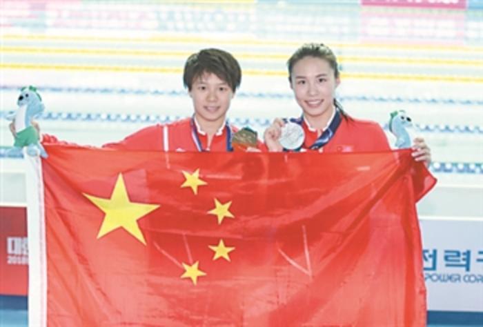 看起来,孙杨不只是来沾点喜气,也是来向老将们致敬的。28岁的王涵是中国跳水队年龄最大的选手,而同岁的施廷懋则是中国女队的领军人物。对于人才辈出的梦之队来说,这样的高龄,已属罕见。然而,她们对老之将至,浑然不觉。看看两位姑娘在领奖台上用吉祥物互相打闹的可爱举动,她们似乎还小着呢。