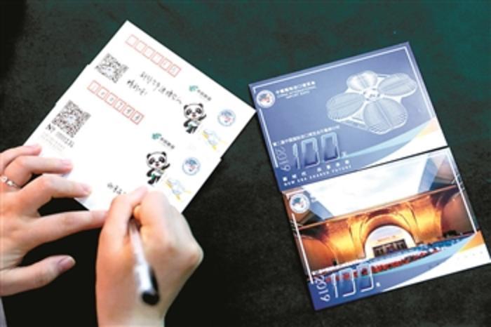 当日,第二届中国国际进口博览会定制明信片首发式在上海国家会展中心举行。
