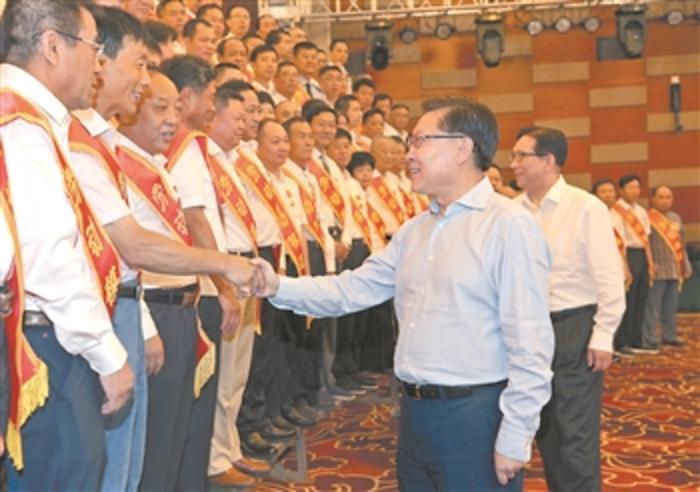 7月26日,2019年全国劳模疗休养活动在北京启动。全国人大常委会副委员长、中华全国总工会主席王东明看望了参加疗休养活动的近200位劳模代表。