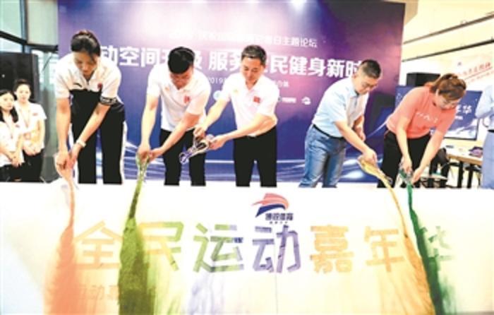 7月26日,由中国体育新闻工作者协会主办、北京圈内圈外文化发展有限公司承办的“2019庆祝国际体育记者日”主题活动在北京博锐体育综合体举行。图为活动日启动仪式。本报记者 王伟伟 摄