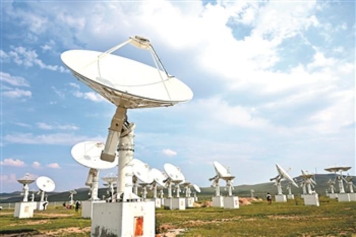 这是明安图观测基地中的抛物面天线(7月27日摄)。内蒙古自治区的明安图观测基地内,排列着100面白色的抛物面天线。这个庞大的天线阵列便是草原“天眼”——明安图射电频谱日像仪,对空间环境监测、太阳活动预报均有重要作用。新华社记者 刘磊 摄