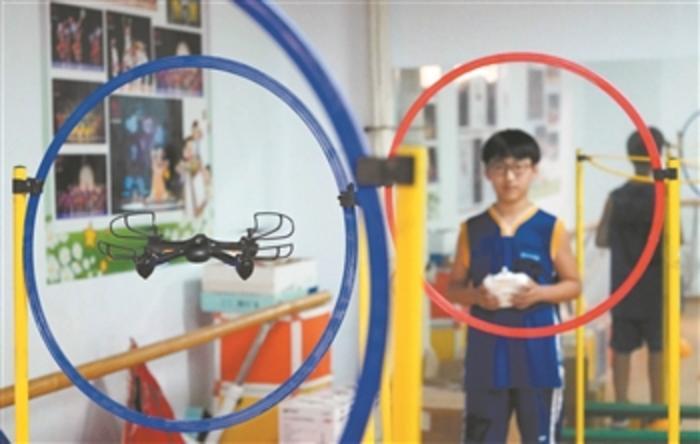 7月30日,学生在河北省涉县青少年活动中心进行航模飞行练习。