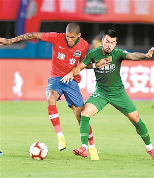 7月27日晚,凭借外援奥汗德扎的进球,河南建业在中超联赛第20轮主场爆冷击败北京国安,送给对手联赛和足协杯双线“三连败”。 本场失利后,北京国安在榜首争夺中的处境更加不利。本赛季联赛开局十连胜后,国安再度陷入后劲不足的尴尬。这场失利也直接促成了国安前主帅施密特的“下课”。 图为河南建业队球员卡兰加(中)与北京中赫国安队球员李可(右)在比赛中拼抢。 新华社记者 李嘉南 摄