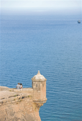 7月28日,游客在西班牙阿利坎特市的圣巴巴拉城堡上参观游览。