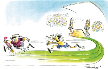 在颁奖台上,长跑健儿的金牌被抢,歹徒飞奔而逃,其速度连冠军也追赶不上。人们不禁要联想:此人若改邪归正驰聘在赛场……【印度】桑 卡
