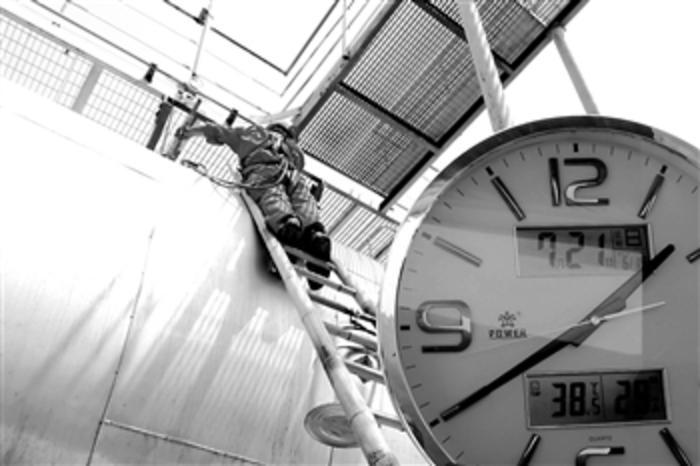 7月21日,在冀东油田油气集输公司高尚堡联合站天然气装置区,几名员工正冒着38℃的高温抢修天然气脱碳压缩机冷却系统。