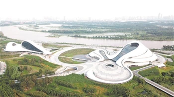 这是的哈尔滨地标建筑——哈尔滨大剧院(7月28日无人机拍摄)。