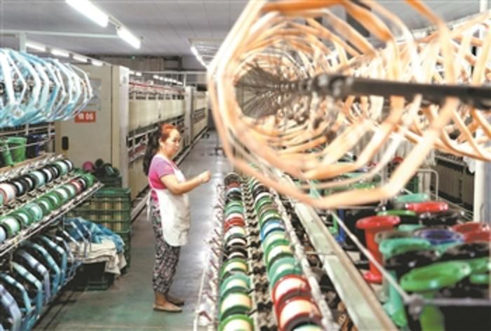 工人在安康市石泉县陕西天成丝业有限公司生产车间内工作(8月7日摄)。
