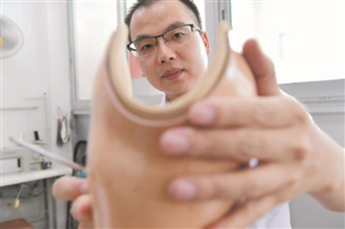 1981年出生的黄水根是一名假肢装配工程师,从2002年起一直在江西省康复辅具技术中心从事假肢矫形器等康复辅助器具的制作服务工作。取型修型、抽真空成型,帮人装配、训练、再交付使用……每一步都必须认真仔细,像是对待一个有生命的东西一样。