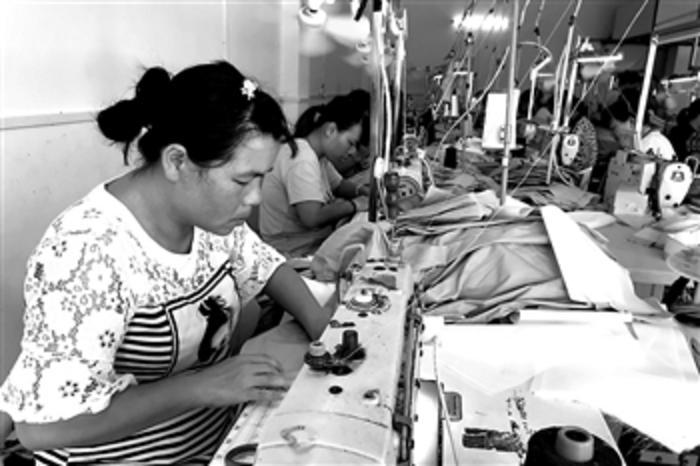 贫困户黄彩新(左一)在兴业县易地扶贫搬迁安置小区“老乡家园”附近的“就业扶贫车间”里工作(8月12日摄)。近年来,广西兴业县深入开展易地扶贫搬迁工作,不断完善公共服务配套设施,全方位满足搬迁群众的安居、就学、就医、就业、创业、耕种等需求。新华社记者 曹祎铭 摄