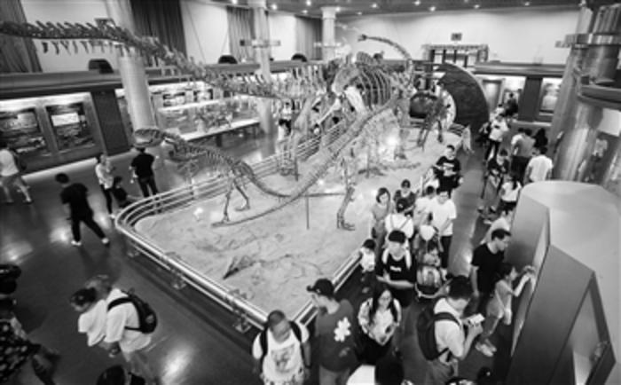 北京自然博物馆,观众正夜间参观。在本周,自然博物馆开启奇妙之夜。为期5天的活动中,博物馆将围绕世园会“美化家园·绿色生活”理念,通过炫丽的节目展演、“绿地球”文创市集、科学讲座、科学教育活动、互动讲解等多种形式,向公众展示自然资源、民俗传统与艺术文化。