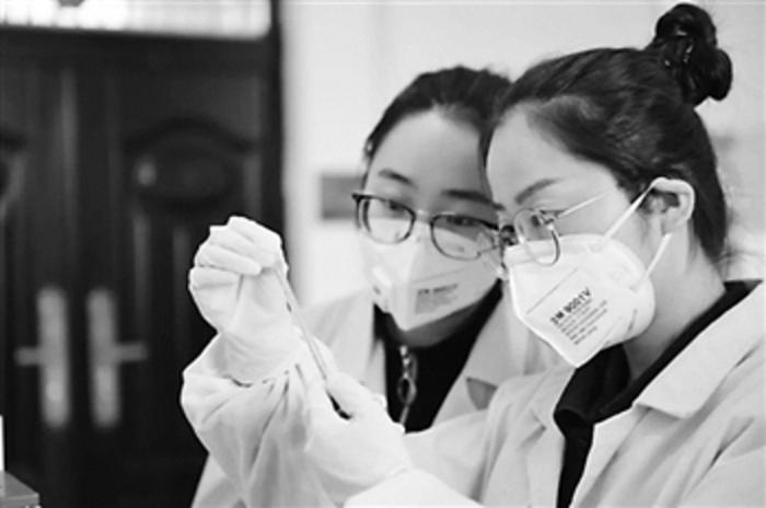 图为8月6日,化验组的姐妹花正在仔细查看天然气样品。黄冰 摄