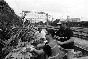 近日,常州火车站组织沿线职工开展防洪重点地段全覆盖检查,做好铁路沿线危树、枯枝的排查、清理工作,消除大风暴雨天气的铁路行车安全隐患。