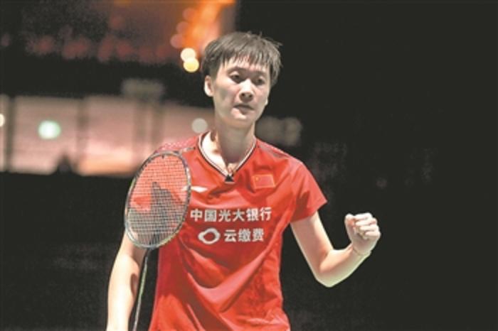8月21日,中国选手陈雨菲在比赛中庆祝得分。