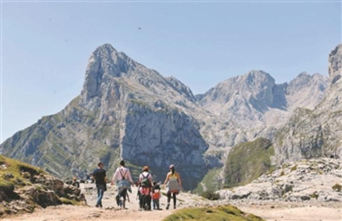 8月21日,游客在西班牙欧洲之峰国家公园内徒步。