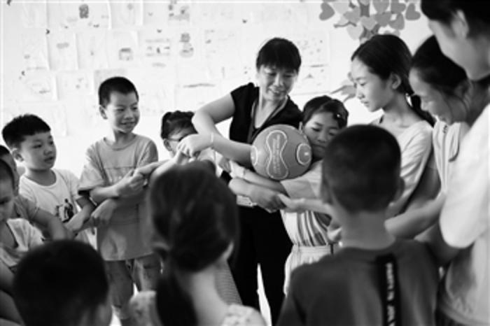在江西省乐安县龚坊镇南边村的“童伴之家”,“童伴妈妈”袁小琴带着孩子们做游戏。这个“童伴之家”暑期每周有三天下午开放,平时周六日全天对孩子们开放。从2018年开始,中国扶贫基金会和江西省慈善总会在乐安县10个贫困村进行试点,每个村聘请一位全职儿童守护专员——“童伴妈妈”,建立一个“童伴之家”。“童伴之家”由“童伴妈妈”负责管理,孩子们周末或放假时可以来“童伴之家”看书学习、开展活动,“童伴妈妈”定期对孩子们进行家访,开展安全防护等主题活动。新华社记者 陈晔华 摄