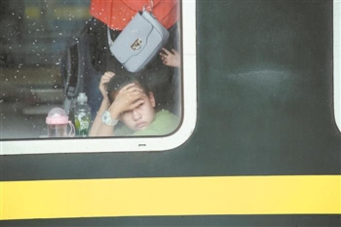 图为在宁波发往兰州的列车上,一位“小候鸟”因为告别父母而伤心落泪。