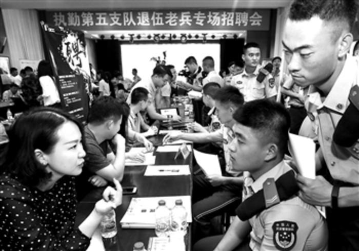 当日,武警上海总队执勤第五支队举办退伍老兵专场招聘会,40多家企业提供多种就业岗位,近百名退伍老兵当场达成签约意向。