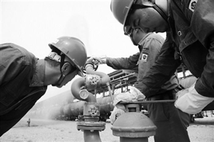 近日,中国石化西北油田油气运销部雅克拉末站对站内消气防设施进行了全面检测,并对存在问题的设备、设施进行修复,及时排查、消除安全隐患,保证各种安全防护设施处于完好状态,以安全、平稳的生产运行状态向祖国70年大庆献礼。图为检测人员在对火车装车栈桥区消防水炮进行检测。张志勇 王磊 摄