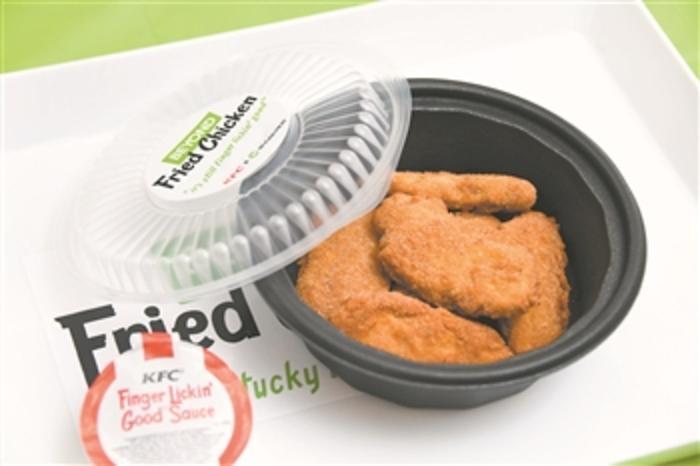 8月27日,美国“人造肉”生产商“超肉”(Beyond Meat)和肯德基合作,在美国亚特兰大一家肯德基餐厅推出的“人造肉”炸鸡。东方IC供图